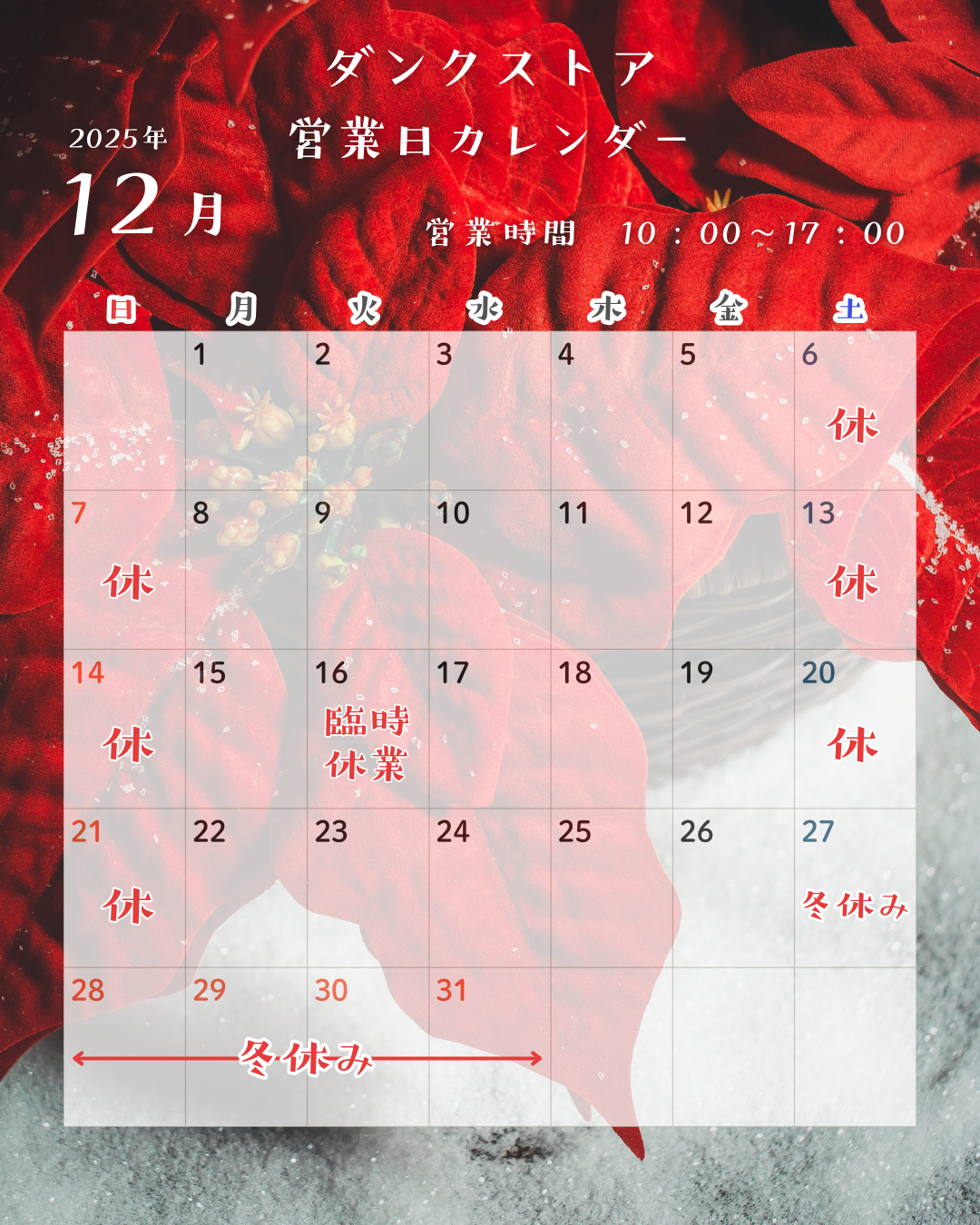 ※12/16(火)はスタッフ不在の為休業とさせていただきます。