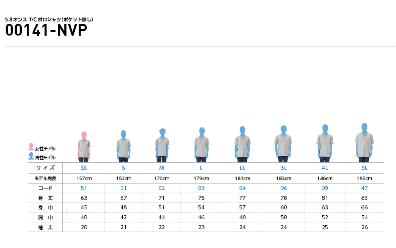 | サイズ | SS | S | M | L | LL | 3L | 4L | 5L |