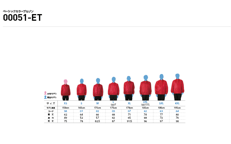 | サイズ | XS | S | M | L | XL | 2XL | 3XL | 4XL |