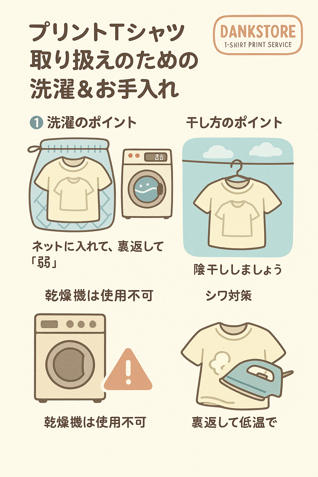 日頃のちょっとした工夫で、Tシャツのプリントはぐっと長持ちします。ぜひ参考にして、いつまでもお気に入りの1枚を楽しんでくださいね😊